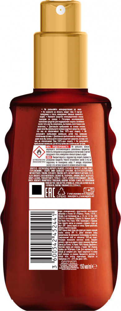 Garnier Солнцезащитное масло-спрей для загара «Ambre Solaire» водостойкое с маслом ши SPF 15-10% +401