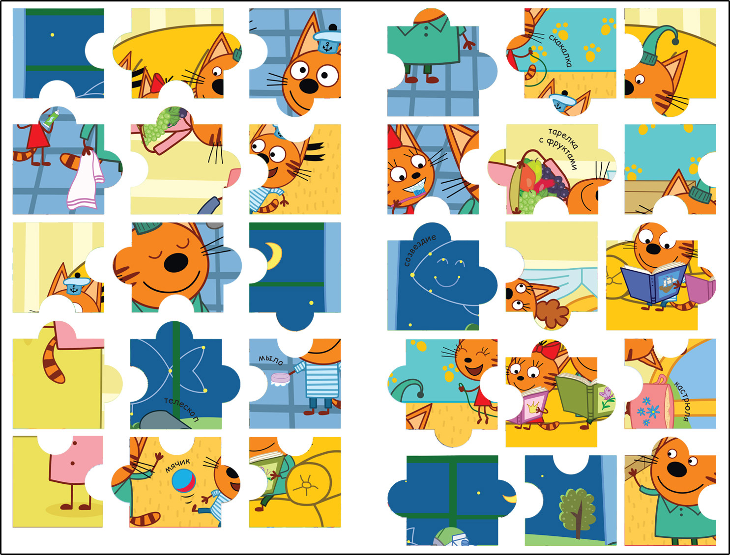 Три кота. Наклейки-пазлы. Наш деньВ данный момент этот товар отсутствует в продаже. Возможно, у нас найдется аналогичный или похожий товар здесь. Книга «наш день» из серии «Три кота. Наклейки-пазлы» познакомит ребенка с распорядком дня и в игровой форме научит ориентироваться в времени. Внутри малыша ждут наклейки-пазлы и приключения с любимыми героями. Составляя из частей целое, ребенок потренирует логику и мелкою моторику. Также на каждой странице его ждут увлекательные задания на внимательность и расширение кругозора. |
