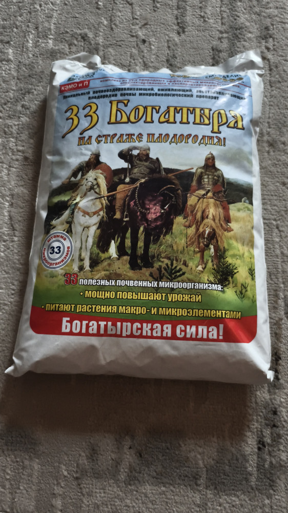 💳 Оплатить за товар можно при получении 🇰🇿 Есть бесплатная доставка по Казахстану 🎁 Копите бонусы с каждой покупки Серия: 33 богатыря Почвооздоравливающий микробиологический препарат, содержит в составе важные 33 штамма почвенных организмов. Применяется для выращивания всех видов культур и для всех видов почв. Препарат повышает урожайность и качество продукции, стимулирует рост и развитие растений, восстанавливает плодородие и содействует улучшению структуры почвы, защищает иммунитет от различных заболеваний, синтезирует нужные растениям аминокислоты, витамины, биостимуляторы. Удобрение содержит полный комплекс веществ, необходимых для полноценного и сбалансированного питания растений. Превышение рекомендуемой нормы совершенно безопасно и лишь усилит положительный эффект от внесения препарата. |