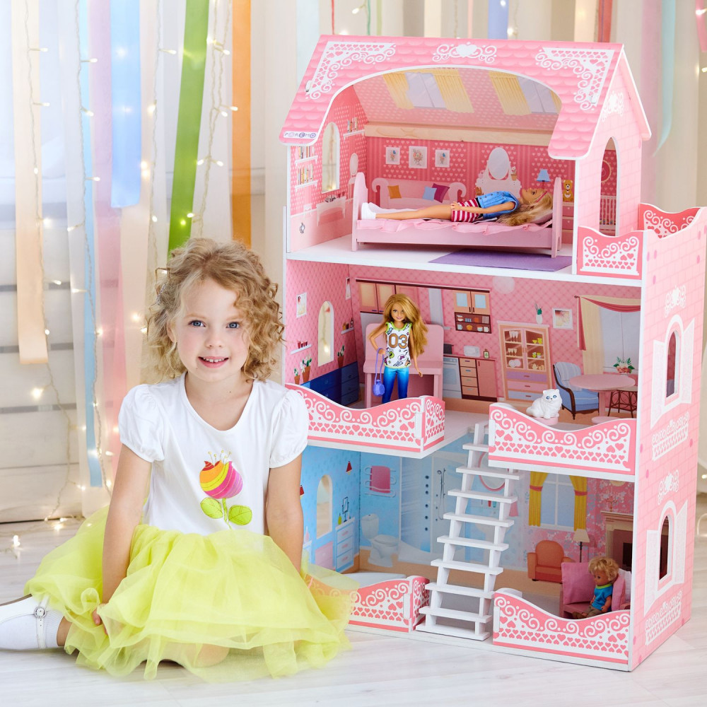 Плохое качество, развалилось при сборке, одного отверстия не хватало. Выкинули домик в итоге. Только мебель оставили.