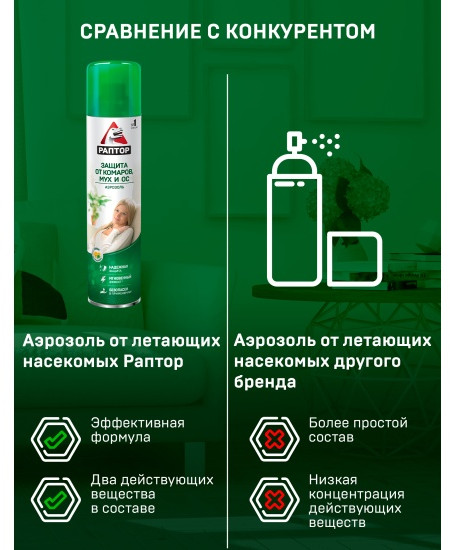 Раптор Аэрозоль от летающих насекомых-20% +64