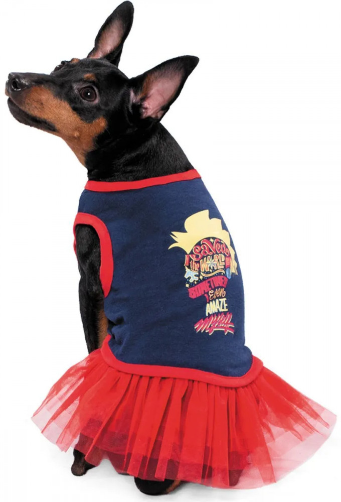 Стильное платье в дизайне Капитан Марвел подойдет для ношения в прохладную и теплую погоду, а также для защиты от пыли и холода. Модное цветовое сочетание и дизайнерский принт не оставит вашего питомца не замеченным. Юбочка из сетчатой ткани отлично держит форму, не стесняет движений питомца. Ткань не потускнеет даже после многократных стирок.
