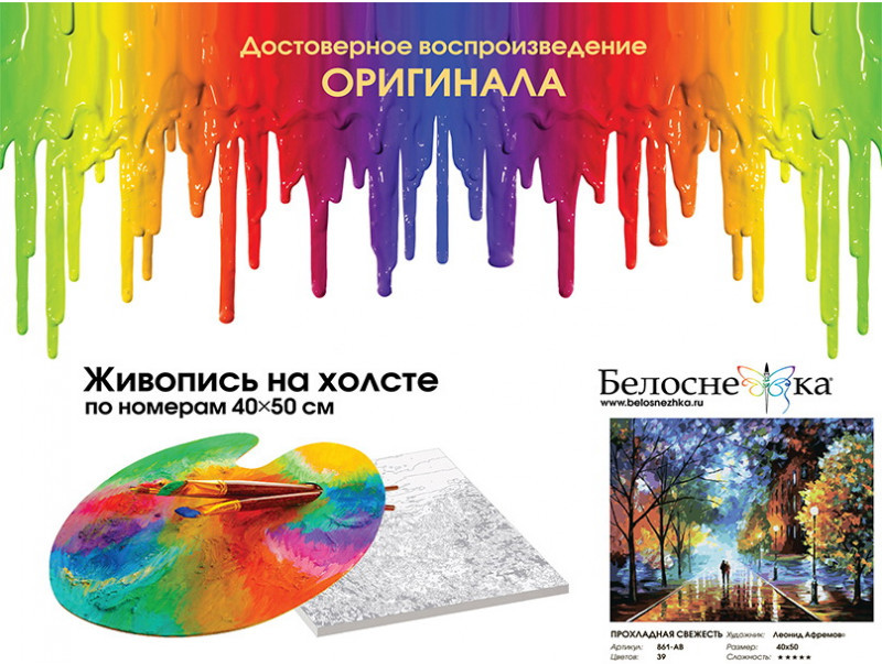 💳 Оплатить за товар можно при получении 🇰🇿 Есть бесплатная доставка по Казахстану от 1 дня 🎁 Копите бонусы с каждой покупки Основа картины — хлопковый холст, натянутый на деревянный подрамник. На холст нанесена схема, разделенная на области для закрашивания. Цифра внутри каждой области указывает на номер краски, которой необходимо закрасить данный участок. В комплект раскраски входят акриловые краски на водной основе, экологически безопасные, без запаха, быстросохнущие. Картина раскрашивается без смешивания красок. Набор комплектуется специальными кистями разного размера с искусственным ворсом для акриловых красок. |