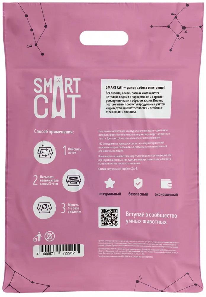 Сбалансированное питание на каждый день поможет питомцу в великих свершениях. Вашей кошке необходим корм, который будет не только вкусным, но и полезным для правильного развития организма на всех жизненных этапах. «Smart Cat» насыщен важнейшими элементами, которые поддерживают здоровье любимца. Здоровый питомец — новые свершения каждый день!