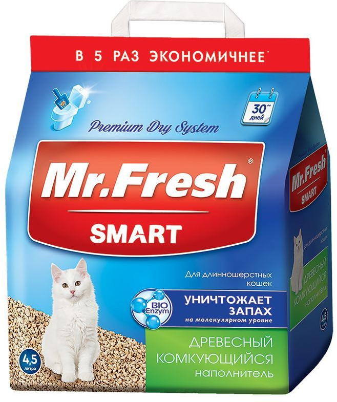 Mr.Fresh Smart — это умный древесный комкующийся наполнитель.