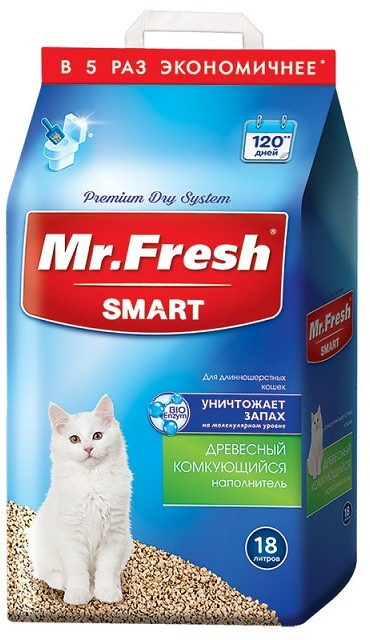 Mr.Fresh Smart — это умный древесный комкующийся наполнитель.