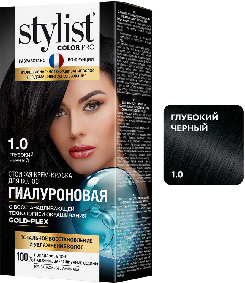 Stylist Color Pro Крем-краска для волос гиалуроновая, оттенок 1.0 глубокий чёрный