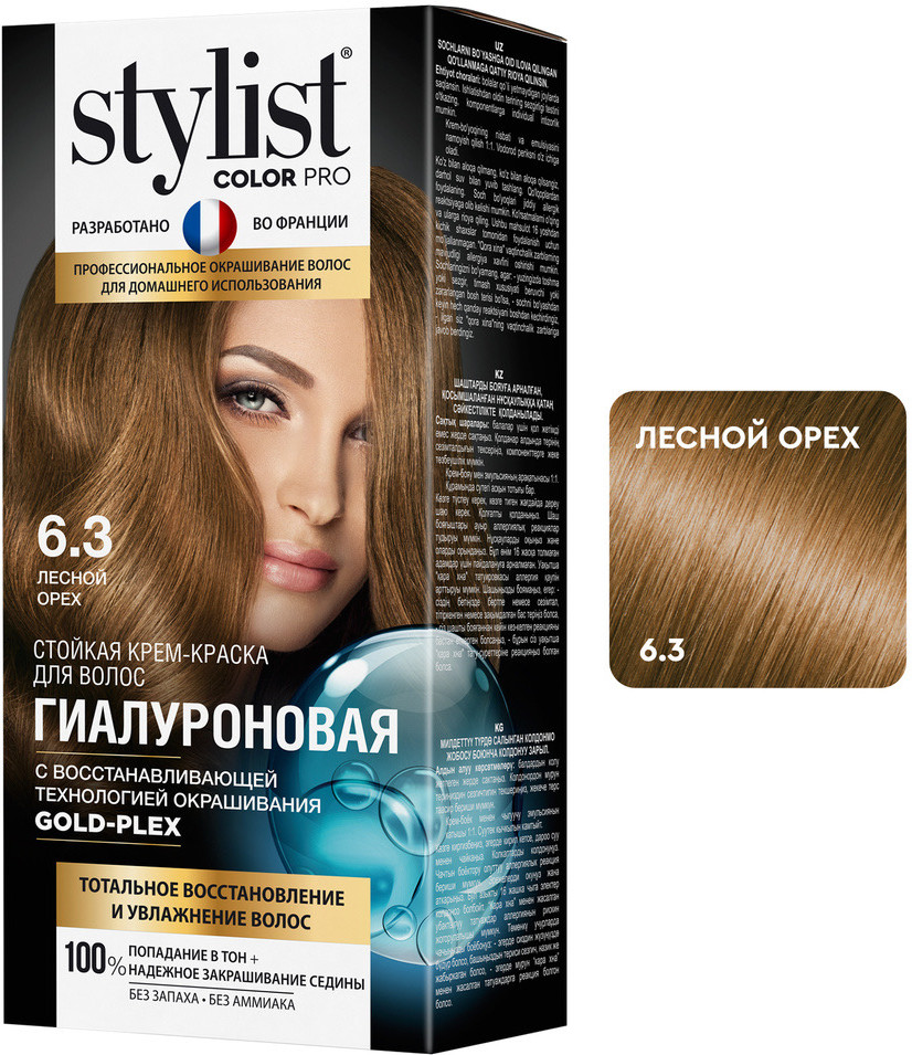Stylist Color Pro Крем-краска для волос гиалуроновая, оттенок 6.3 лесной орех