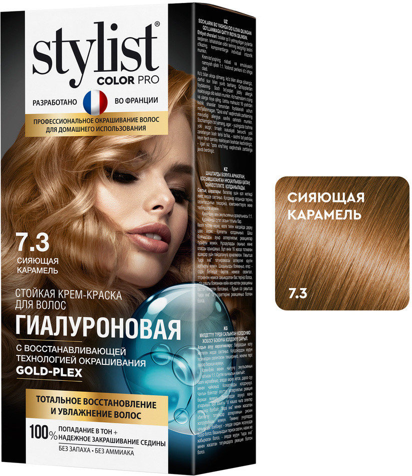 Stylist Color Pro Крем-краска для волос гиалуроновая, оттенок 7.3 сияющая карамель