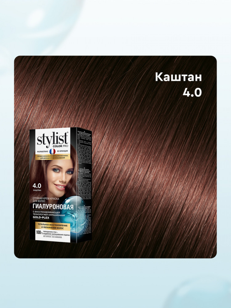 Stylist Color Pro Крем-краска для волос гиалуроновая, оттенок 4.0 каштан