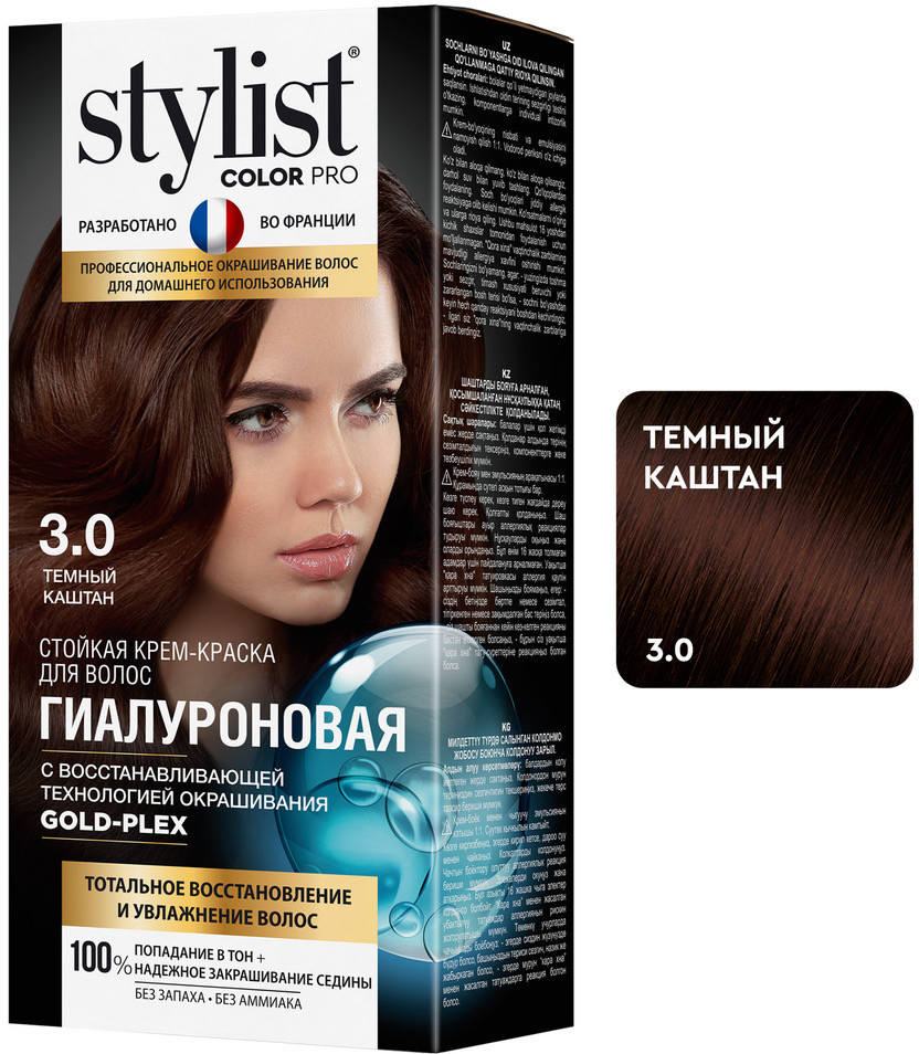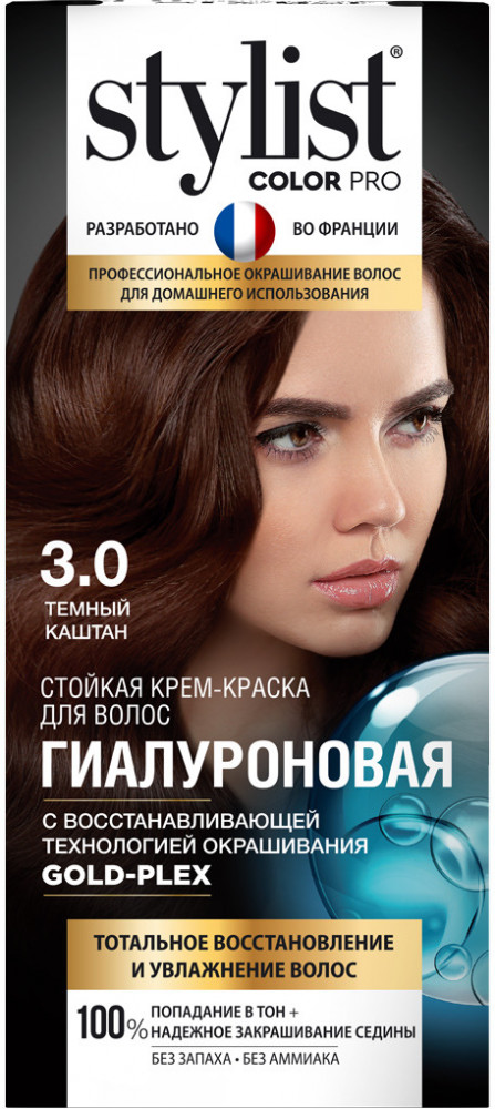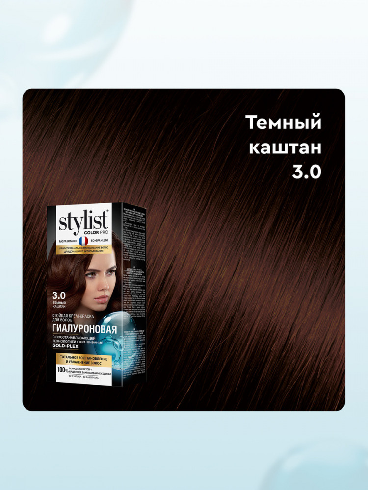 Stylist Color Pro Крем-краска для волос гиалуроновая, оттенок 3.0 темный каштан