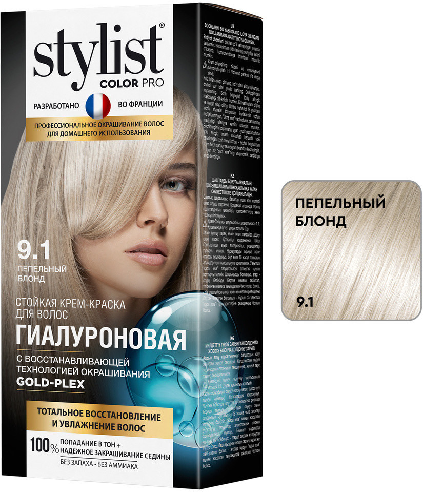 Stylist Color Pro Крем-краска для волос гиалуроновая, оттенок 9.1 пепельный блонд
