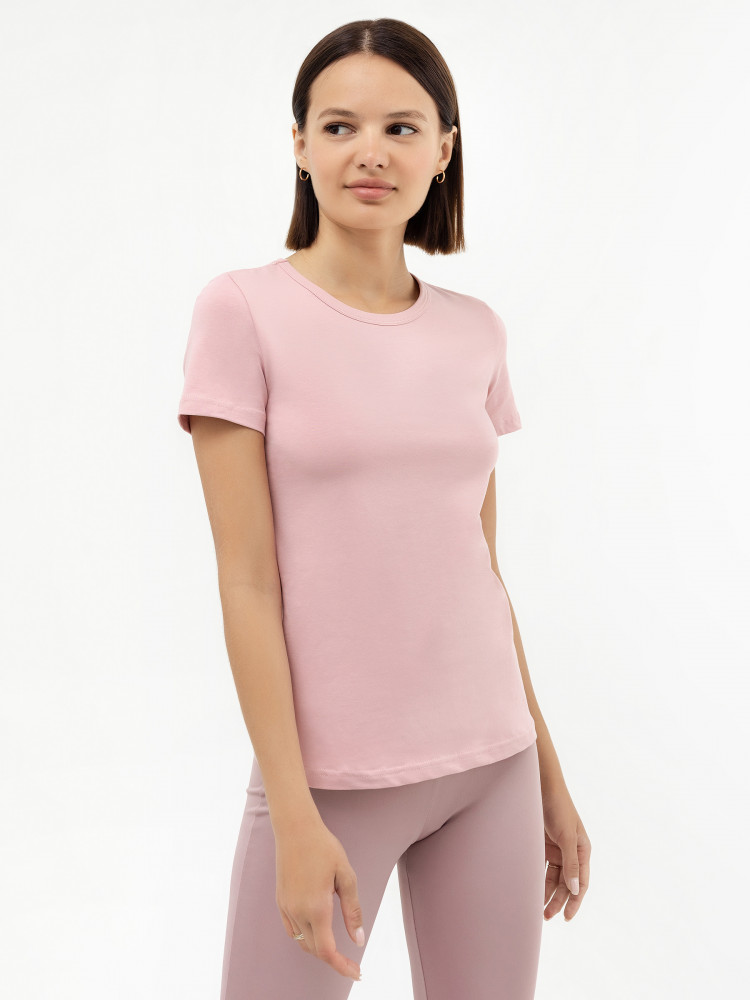 Цвет не такой нежно-розовый, как на фото, скорее бежевый. В целом хорошая футболка на лето, не слишком плотная, но и не тоненькая ткань.