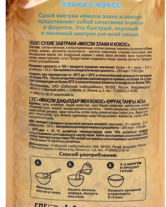 Купила для детей, им нравится залить молоком и через 5 мин есть, удобно быстро и не нужно варить, вкусно. Понравились мюсли и мне и детям, рекомендую всем.