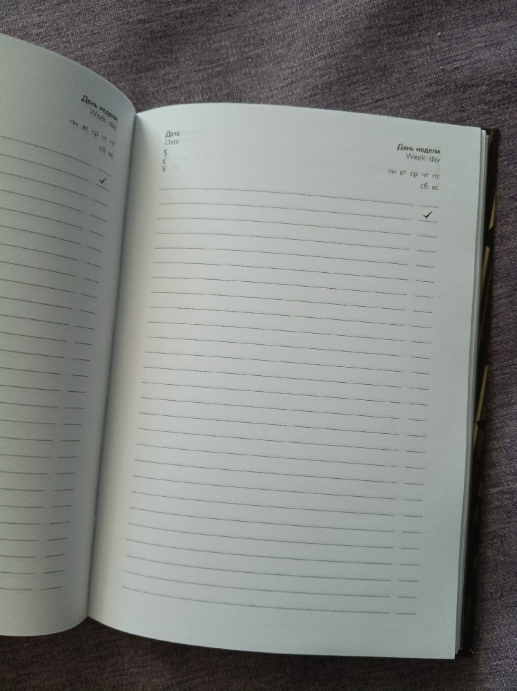 Блокнот соответствует ожиданиям. По описанию ровно такой, как и думала. Страницы очень беленькие, хорошо прочерчены линии. Обложка гнется, что-то среднее между мягкой и твердой. Материал обложки очень приятный тактильно, такой матовый, бархатистый. Как ткань. Мне нравится такая обработка бумаги