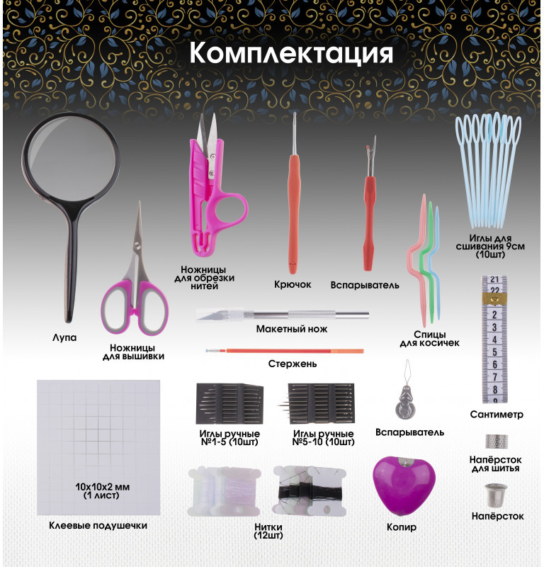 💳 Оплатить за товар можно при получении 🇰🇿 Есть бесплатная доставка по Казахстану от 1 дня 🎁 Копите бонусы с каждой покупки Ни одна рукодельница не сможет обойтись без ножниц и иголок с нитками, но даже этого будет недостаточно. Мы знаем, чем ещё можно дополнить ваше любимое занятие и, возможно, привить любовь к другим хобби. Набор для вышивания от Perfect Craft упакован в пластиковую розовую коробочку, которая придаёт аксессуарам особенно красивый вид. Его можно преподнести в качестве милого подарка. |