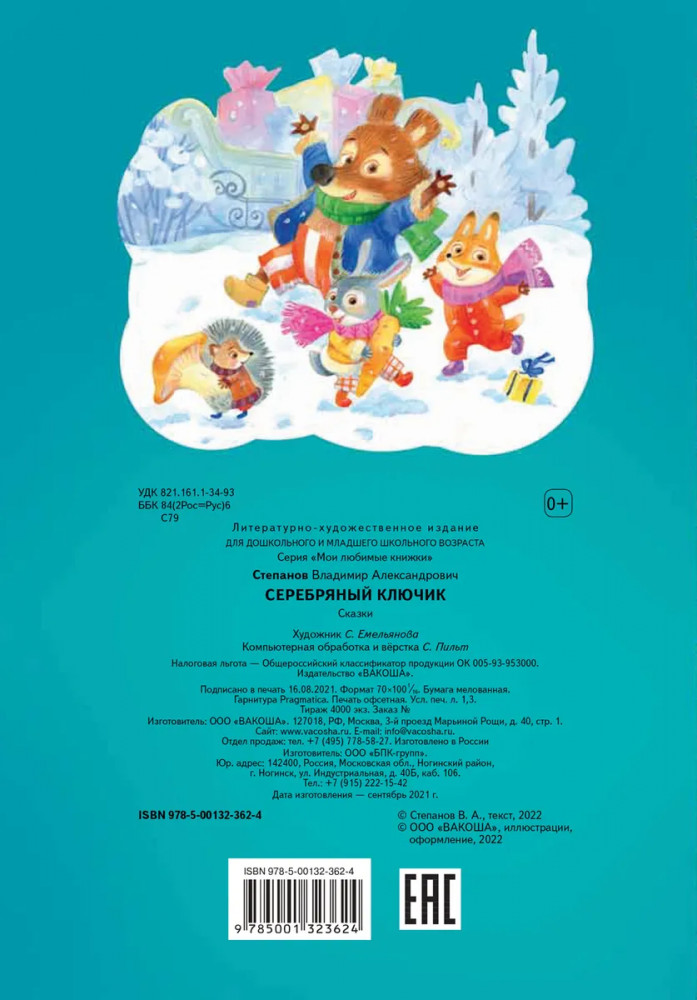 💳 Оплатить за товар можно при получении 🇰🇿 Есть бесплатная доставка по Казахстану от 1 дня 🎁 Копите бонусы с каждой покупки Серия: Мои любимые книжки Добрые сказки о милых лесных зверюшках. Первая сказка о том, как Заяц нашёл серебряный ключик, и решил разыскать его хозяина. Им оказался добрый Дед Мороз, который с радостью одарил всех обитателей леса вкусными подарками. Но не всегда зверюшки бывают такими добрыми. Во второй сказке хитрые лиса и волк решили обмануть доброго кота наловившего вкусной рыбки. Но коварство не может победить в доброй сказке. |