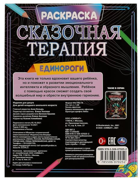 УМка Раскраска «Единороги. Сказочная терапия»В данный момент этот товар отсутствует в продаже. Возможно, у нас найдется аналогичный или похожий товар здесь. Эта книга не только вдохновит вашего ребёнка, но и поможет в развитии эмоционального интеллекта и образного мышления. Ребёнок с помощью красок сможет создать свой волшебный мир и обрести внутреннюю гармонию. |