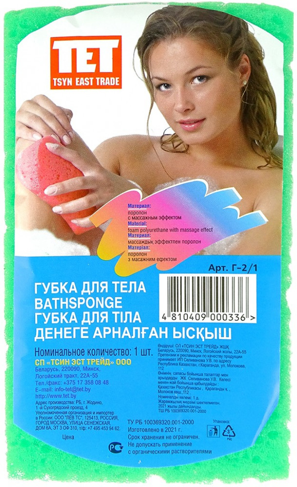 TET Губка для тела с массажным слоем+12 прочность умеренная жесткость цена удобный размер