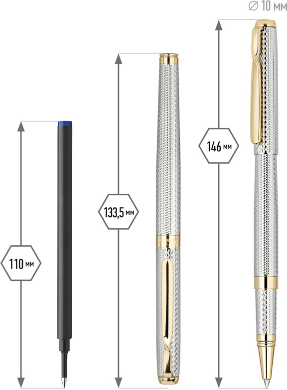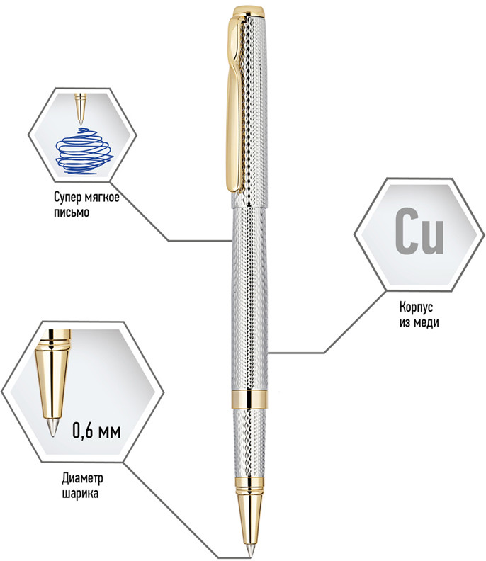 💳 Оплатить за товар можно при получении 🇰🇿 Есть бесплатная доставка по Казахстану от 1 дня 🎁 Копите бонусы с каждой покупки Изящная подарочная ручка-роллер Delucci Celeste подчеркнёт статус обладателя. Серебристый корпус с золотыми вставками и интересное рифление акцентируют внимание на её ценности, медный корпус с никелированием гарантирует прочность. Закрученный клип из нержавеющей стали выполняет не только практическую функцию — закрепить изделие на ежедневнике или кармане, но и добавляет оригинальности. |