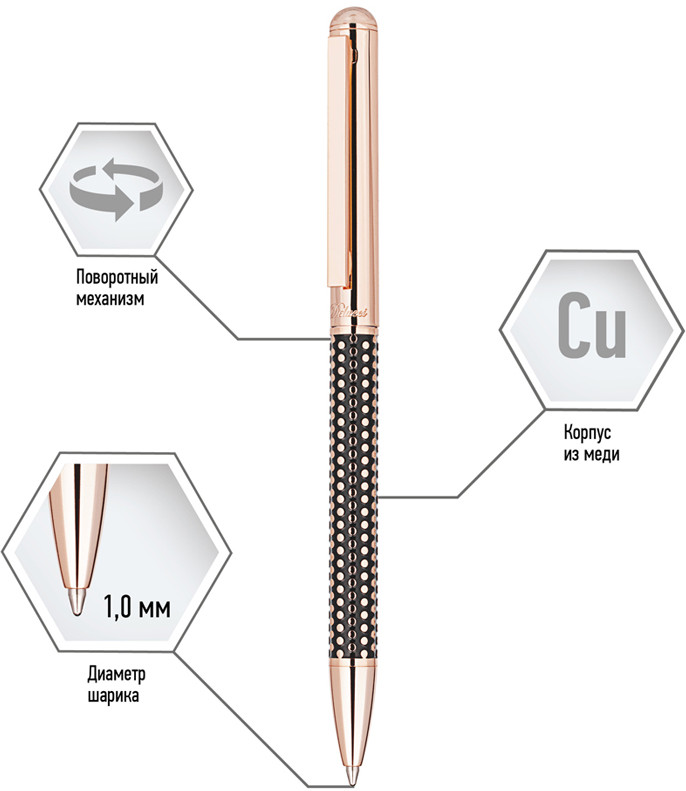 💳 Оплатить за товар можно при получении 🇰🇿 Есть бесплатная доставка по Казахстану от 1 дня 🎁 Копите бонусы с каждой покупки Delucci Evento — это роскошная шариковая ручка с синими чернилами, которую оценит любой человек. В ней сочетаются строгость и оригинальность. Классический черный корпус украшен элегантной гравировкой золотом. Клип сделан из нержавеющей стали, он позволяет фиксировать ручку на ежедневниках, блокнотах и карманах одежды. Delucci Evento оснащена поворотным механизмом, внутри которого расположен пишущий стержень диаметром 1 мм, который идеально подходит для быстрого стиля письма. Упакована в кожаный футляр. |