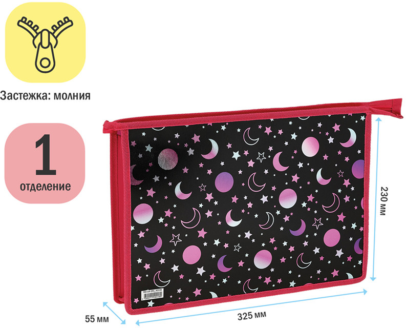 💳 Оплатить за товар можно при получении 🇰🇿 Есть бесплатная доставка по Казахстану от 1 дня 🎁 Копите бонусы с каждой покупки Серия: Moonlight Удобная папка из плотного материала с красочным рисунком на молнии. Современный дизайн добавляет яркости и поднимает настроение. |