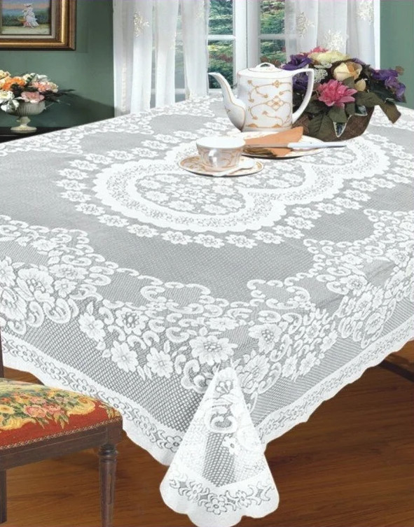Симпатичная скатерть хорошо смотрится на белом столе