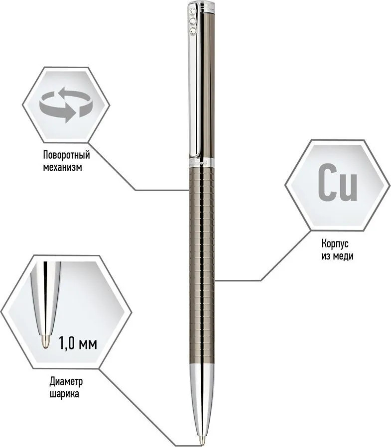 💳 Оплатить за товар можно при получении 🇰🇿 Есть бесплатная доставка по Казахстану от 1 дня 🎁 Копите бонусы с каждой покупки Delucci Stella — это изысканная подарочная шариковая ручка с синими чернилами, которая является образцом классического подарка для коллеги или любимого человека. Классический дизайн с утонченным клипом дополняет инкрустированный в него кристалл. Клип сделан из нержавеющей стали, он позволяет фиксировать ручку на ежедневниках, блокнотах и карманах одежды. Delucci Stella оснащена поворотным механизмом, внутри которого расположен пишущий стержень диаметром 1 мм, который идеально подходит для быстрого стиля письма. Упакована в кожаный футляр. |