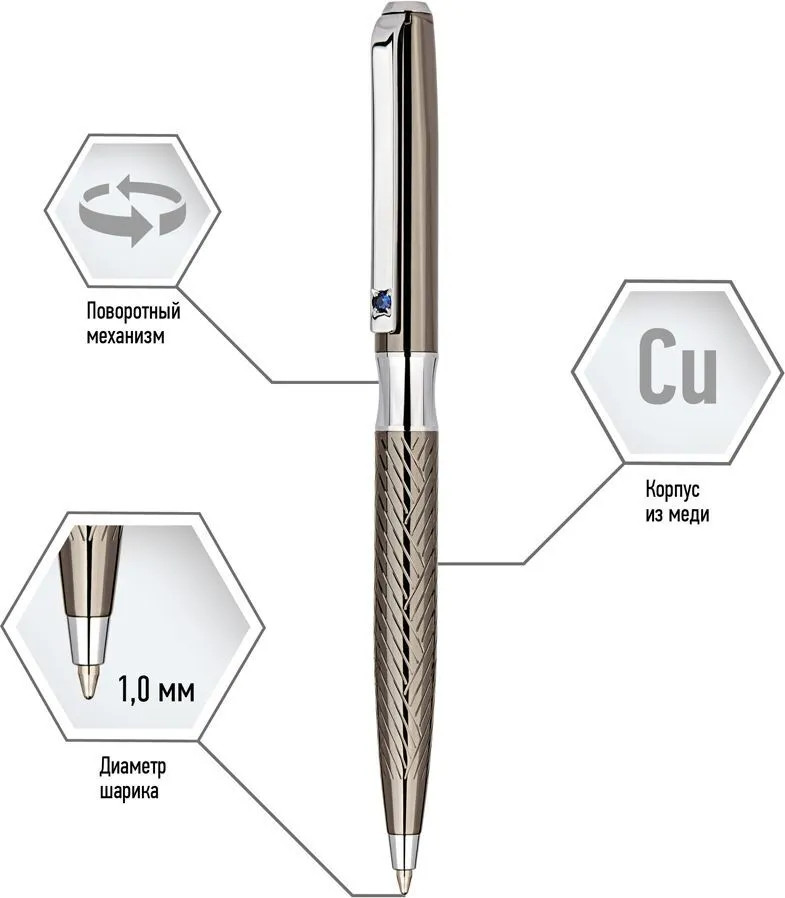 💳 Оплатить за товар можно при получении 🇰🇿 Есть бесплатная доставка по Казахстану от 1 дня 🎁 Копите бонусы с каждой покупки Delucci Taglia — это изысканная подарочная шариковая ручка с синими чернилами, которая подойдёт в качестве подарка неординарным личностям. Классический дизайн с утонченным клипом дополняет инкрустированный в него синий кристалл. Клип сделан из нержавеющей стали, он позволяет фиксировать ручку на ежедневниках, блокнотах и карманах одежды. Delucci Taglia оснащена поворотным механизмом, внутри которого расположен пишущий стержень диаметром 1 мм, который идеально подходит для быстрого стиля письма. Упакована в кожаный футляр. |
