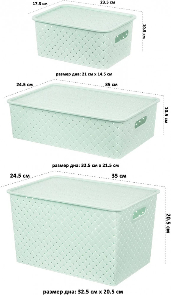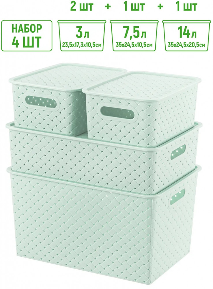 Отличные корзины по очень привлекательной цене. Крышки сидят не плотно, но мне они были не нужны.