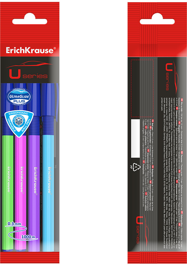Erich Krause Набор ручек шариковых «U-109 Stick&Grip»-20% +34 удобная ручка мягкая резинка хорошо пишет подходящая толщина