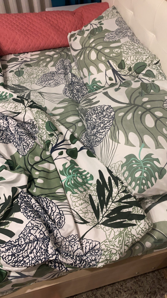 Комплект по качеству ужасный, своих денег не стоит, после стирки весь цвет выцвел, но это полбеды, краска сходит и оставляет зелёные следы на теле. В общем разочарование полное.