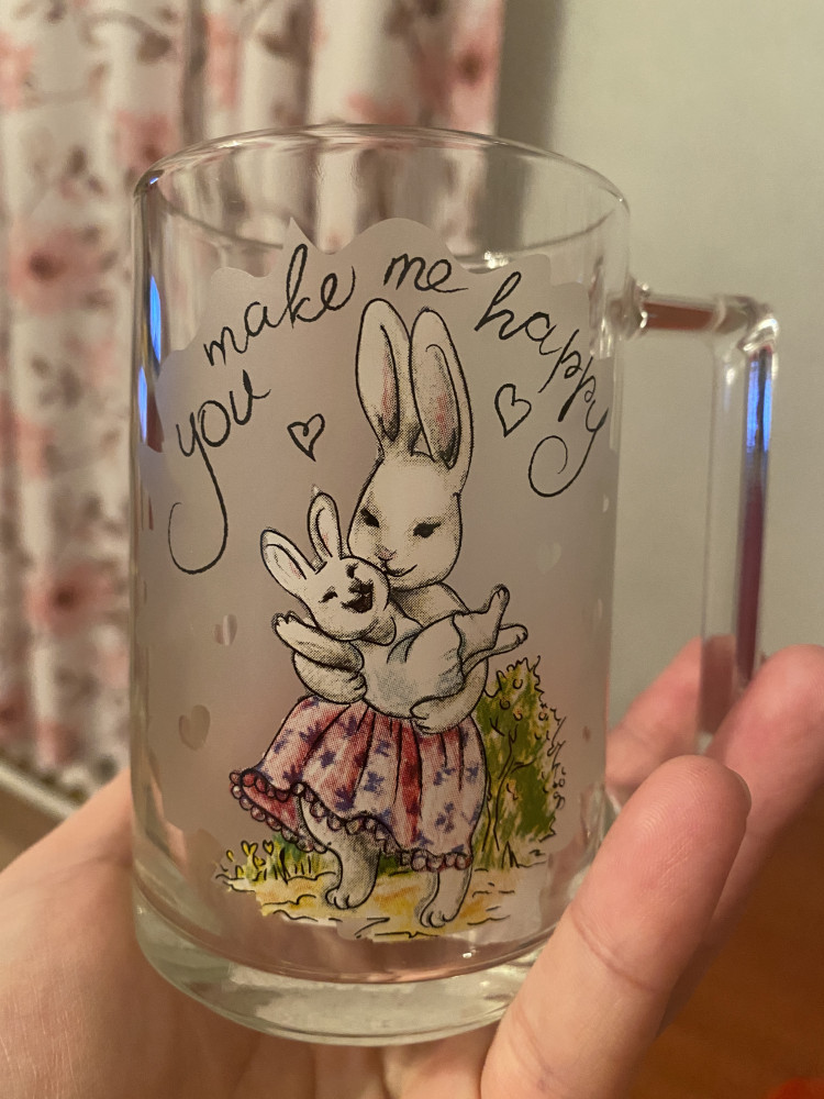 милая , симпатичная кружка, но любителям чая не пойдет-миниатюрная, а вот ребенку,которому можно доверить уже стеклянную посуду-самое то