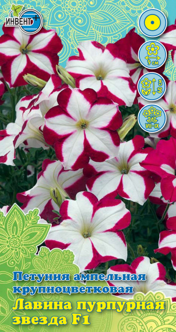 Светолюбивый, холодостойкий, засухоустойчивый однолетник. Предпочитает плодородные почвы без застоя воды. Растение травянистое, ампельное, сильноветвистое, с гибкими, длинными стеблями. Цветки душистые, воронковидные, крупные, 7-9 см диаметром, с выразительной белой звездой на пурпурном фоне. Цветет очень обильно и продолжительно, образуя сплошной каскад цветов. Лучший гибрид для выращивания в балконных и оконных ящиках, великолепно смотрится в подвесных корзинах и высоких напольных вазах. |
