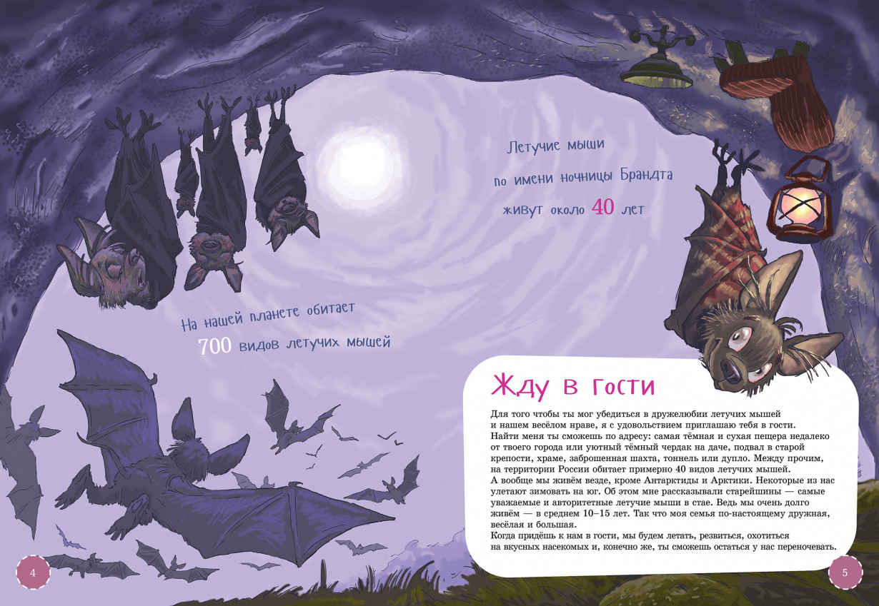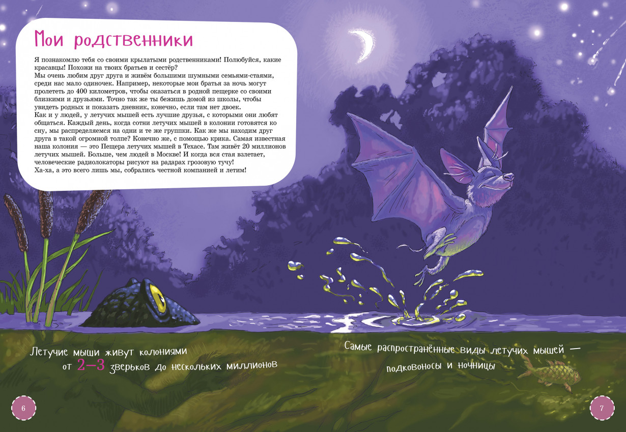 Серия: Занимательная зоология Кто-то летучих мышей обожает, кто-то боится (совершенно напрасно!)... Но равнодушными они не оставляют никого! Маленькая летучая мышка — большая труженица. Она ловит сотни комаров за час, охотится на вредных насекомых и спасает от них наши поля и леса. Летучие мыши из нашей книжки — милые и безобидные — хотят рассказать тебе о своих уникальных умениях, объяснить, почему не надо их бояться и просто подружиться с тобой! |