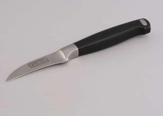 Gipfel Нож для чистки овощей Professional Line изогнутый (7 см)В данный момент этот товар отсутствует в продаже. Возможно, у нас найдется аналогичный или похожий товар здесь. Серия: Professional line Отлично сбалансированный нож для чистки овощей профессиональной серии с кованым утолщенным лезвием из нержавеющей стали. Нержавеющая сталь лезвия ножа легирована добавками ХРОМА, ВАНАДИЯ и МОЛИБДЕНА (X50CrMoV15), которые повышают твердость лезвия и его стойкость к износу. У лезвия коническая заточка. Эргономичная ручка ножа не скользит в руке. |
