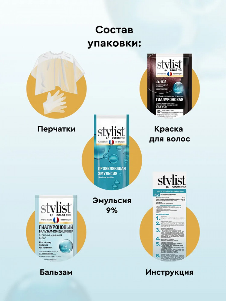 Stylist Color Pro Крем-краска для волос гиалуроновая, оттенок 5.62 Благородный бургунд