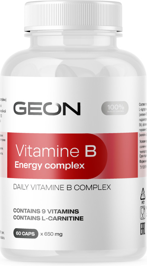 Geon Комплекс из 8 витаминов группы B «Energy complex»В данный момент этот товар отсутствует в продаже. Возможно, у нас найдется аналогичный или похожий товар здесь. Биологически активная добавка к пище GEON™ Vitamine B Energy complex |
