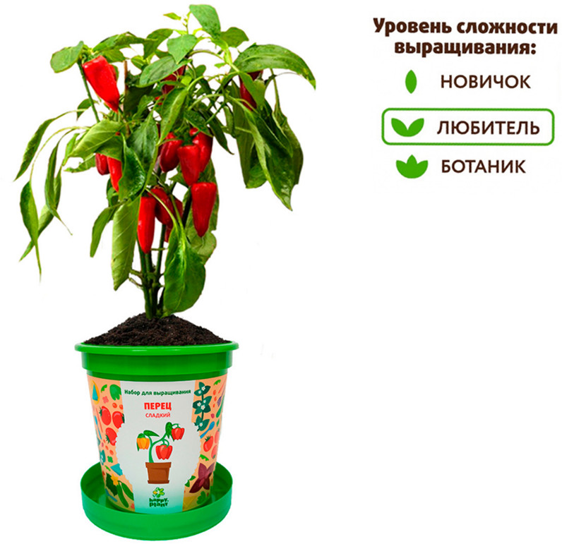 Хороший набор для выращивания. Взошли все семечки, правда не быстро, наверно потому что мы глубоко посадили, но потом начал перчик стремительно расти.