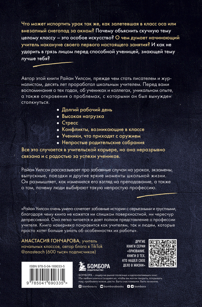 В данный момент этот товар отсутствует в продаже. Возможно, у нас найдется аналогичный или похожий товар здесь. Серия: Призвание. Книги о тех, кто нашел свое дело в жизни «В конце моего первого урока, когда мне пришлось объяснять мальчику, что состригать лобковые волосы маникюрными ножницами и сдувать их в сторону девочки, которая тебе нравится, — это плохая идея, я понял, что учебный процесс будет непростым», — пишет Райан Уилсон, автор книги.