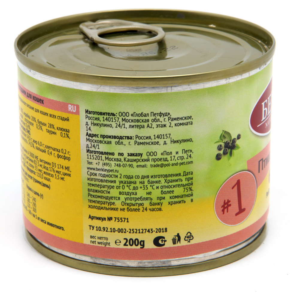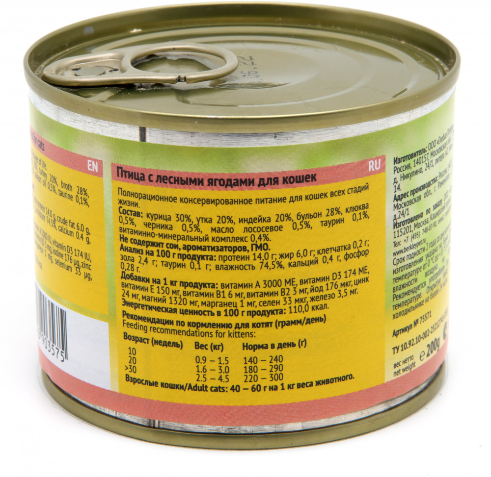 Отзывы «Консервы для кошек «Птица с ягодами»»