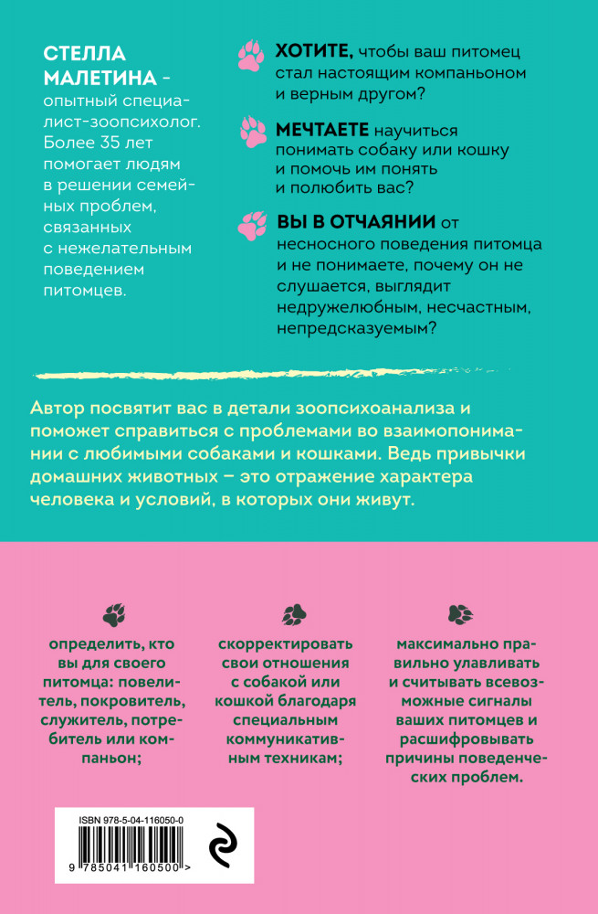 В данный момент этот товар отсутствует в продаже. Возможно, у нас найдется аналогичный или похожий товар здесь. Серия: Домашние питомцы. Уход, здоровье, воспитание Кто вы со своим домашним питомцем? Повелитель или покровитель? По каким причинам возникают сложности в воспитании собаки или во взаимоотношениях с кошкой? В книге зоопсихолога с 30-летним стажем вы найдете детальные ответы на самые актуальные вопросы с точки зрения зоопсихологии. Книга для тех, кто стремится добиться гармонии в совместной жизни с собакой или кошкой и проработать проблемы, которые этому препятствуют.