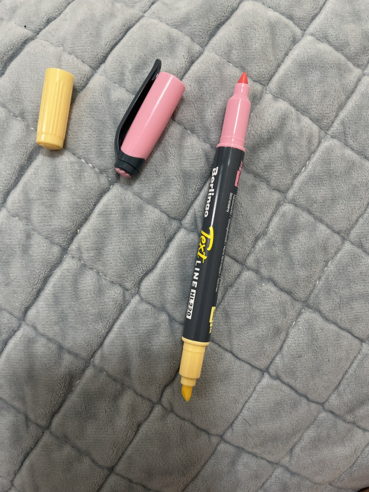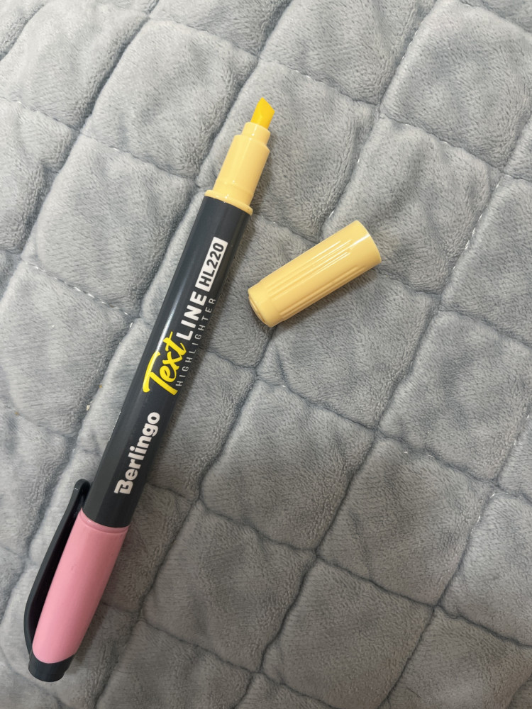 Текстовыделитель компактный и двухсторонний, что удобно для выделения текста.