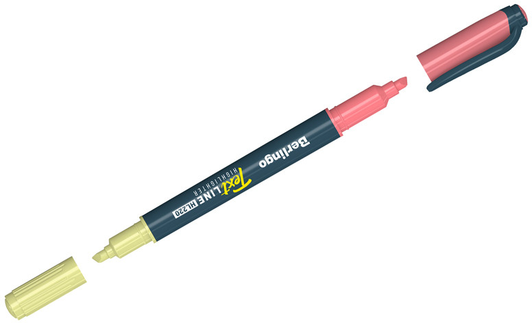 Текстовыделитель компактный и двухсторонний, что удобно для выделения текста.