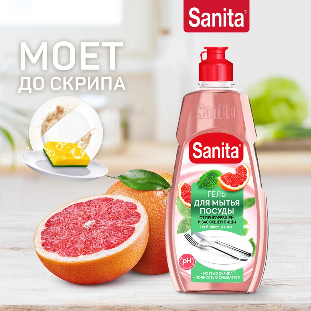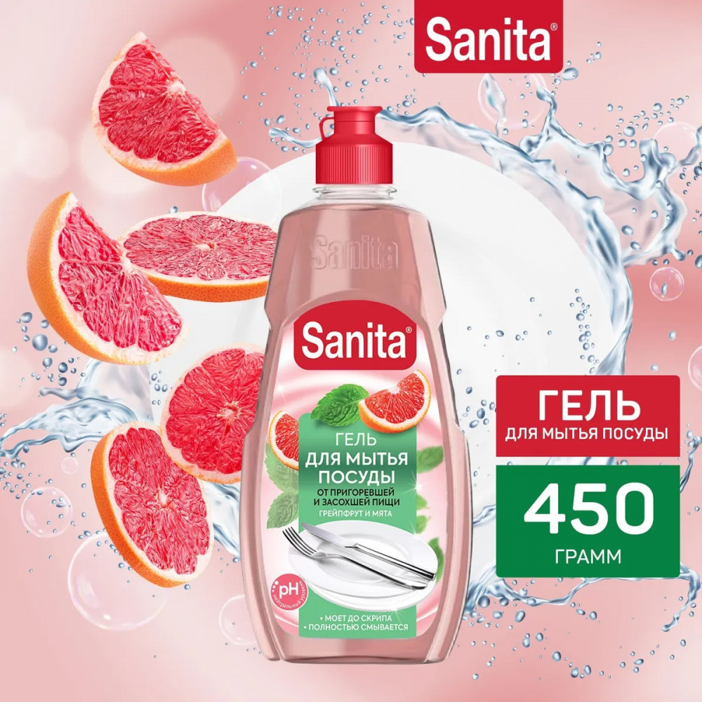 Sanita Гель для мытья посуды от засохшей пищи и жира «Грейпфрут и мята»