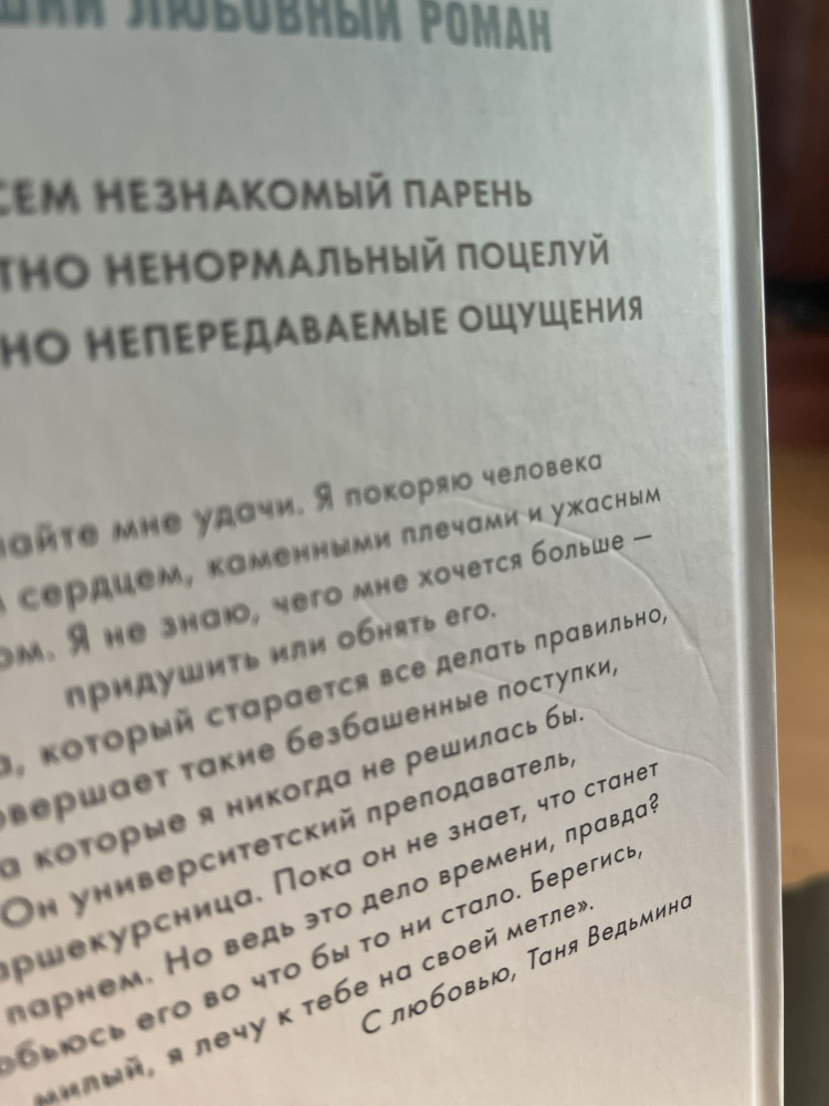 Восхитительная ведьмазахватывающий сюжет хочется перечитать новое издание В данный момент этот товар отсутствует в продаже. Возможно, у нас найдется аналогичный или похожий товар здесь. Серия: #trendbooks Пожелайте мне удачи. Я покоряю человека с железным сердцем, каменными плечами и ужасным характером. Я не знаю, чего мне хочется больше — придушить или обнять его. Он зануда, который старается все делать правильно, но совершает такие безбашенные поступки, на которые я никогда не решилась бы. Он университетский преподаватель, а я — старшекурсница. Пока он не знает, что станет моим парнем. Но ведь это дело времени, правда? Я добьюсь его во что бы то ни стало. |
