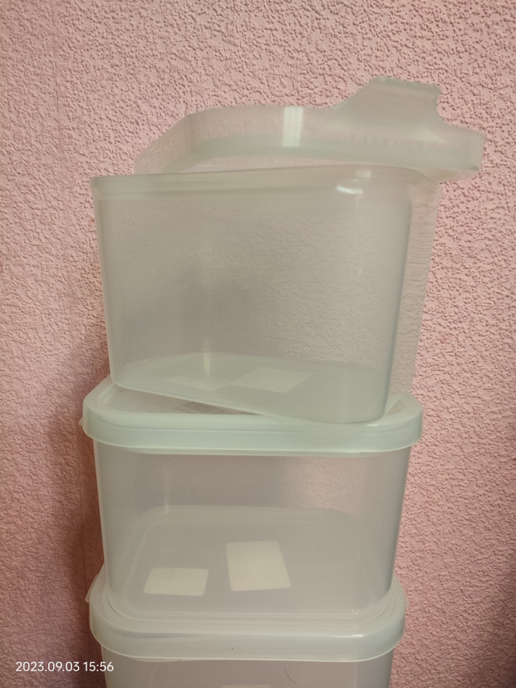Удобно сделаны крышки. Они плотно прилегают к контейнеру. Ставить можно друг на друга коробки и они устойчивы.