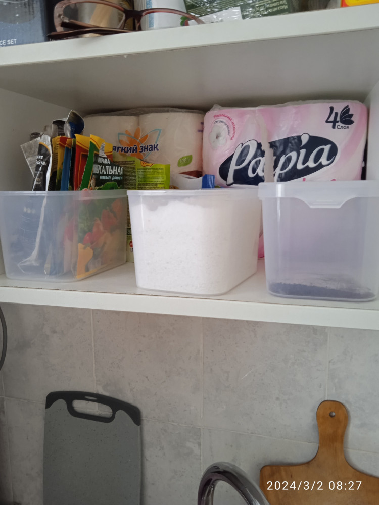 Если для кого-то важно, размер крышки 17х11. У меня не встало в шкафу, как планировала, крышки помешали. Все равно оставила, хорошие контейнеры