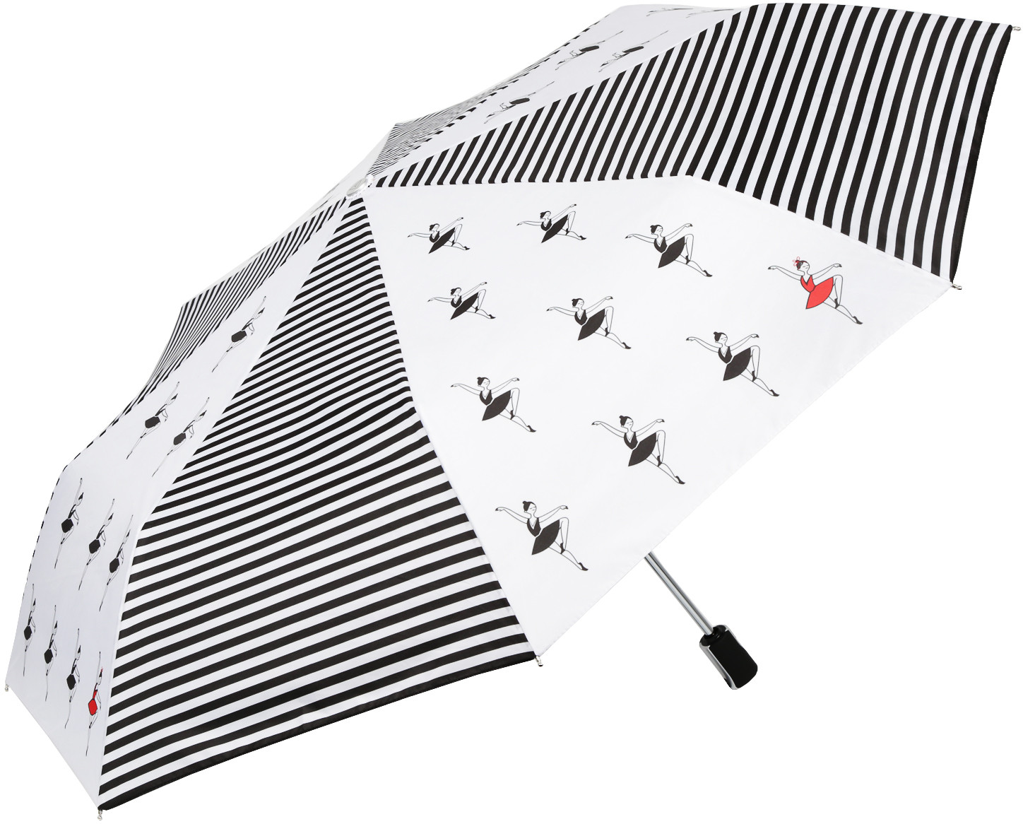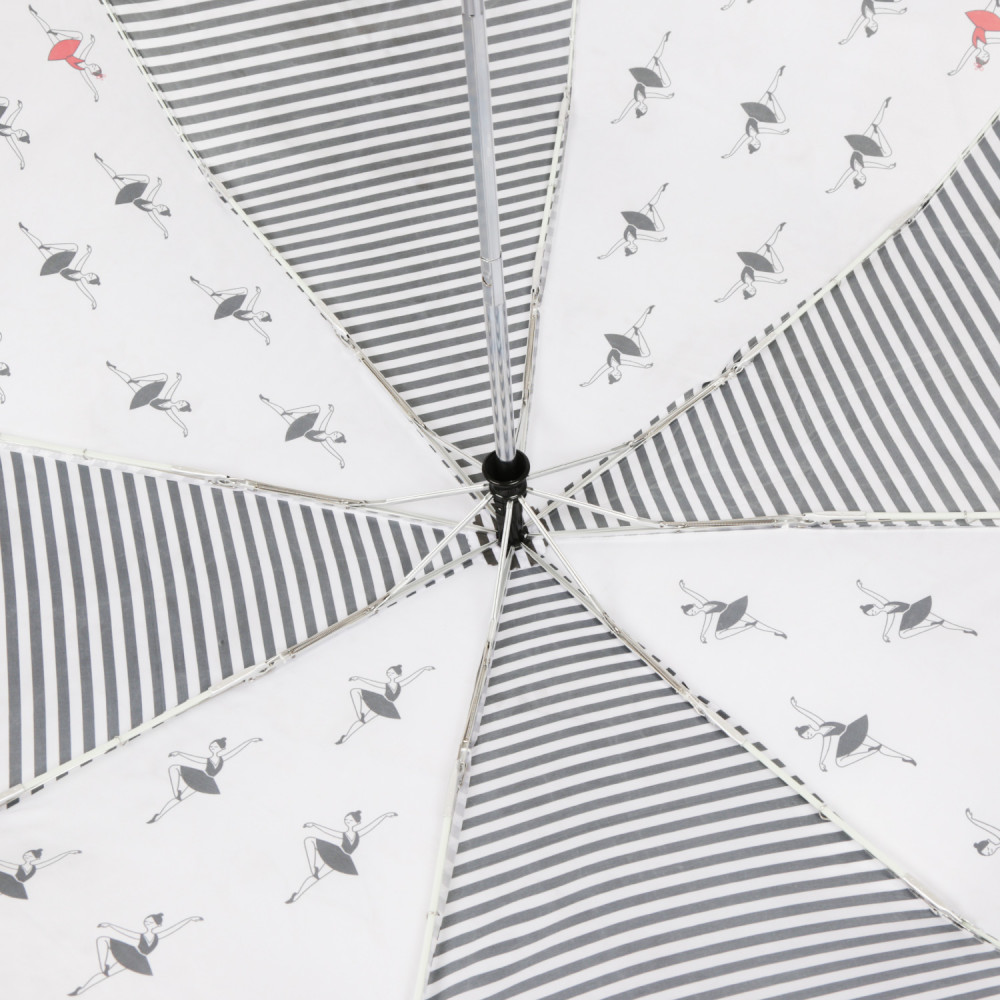 Fabretti Зонт женскийВ данный момент этот товар отсутствует в продаже. Возможно, у нас найдется аналогичный или похожий товар здесь. С этим зонтом «Fabretti» в черно-белой гамме будет приятно неспешно пройтись в дождливый день. Купол выполнен из полиэстера с плетением нити — эпонж. Такое плетение помимо матовой фактуры придает ткани высокую прочность и устойчивость к выцветанию. Клинья с полосатым орнаментом чередуются со вставками, на которых изображены маленькие балерины. |