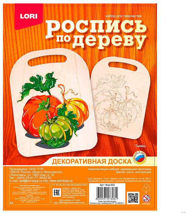 С помощью набора для творчества «Роспись по дереву. Тыквы» от известного бренда «Lori» ребенок сможет разукрасить акриловыми красками декоративную доску. Все компоненты набора изготовлены из экологически чистых материалов. Занятия творчеством развивают образное мышление, воображение, мелкую моторику, аккуратность и усидчивость. Такой набор станет отличным подарком для творческих и активных детей!